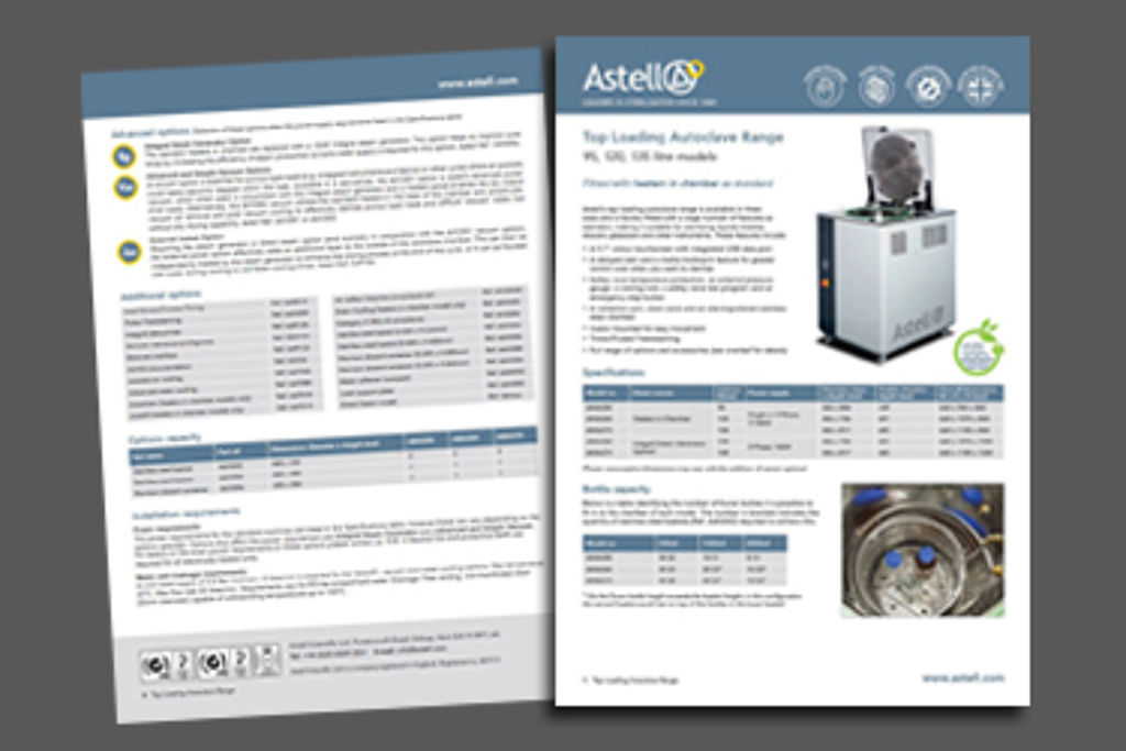 Download individual product range brochures covering Astell autoclaves, steam generators and effluent decontamination systems.