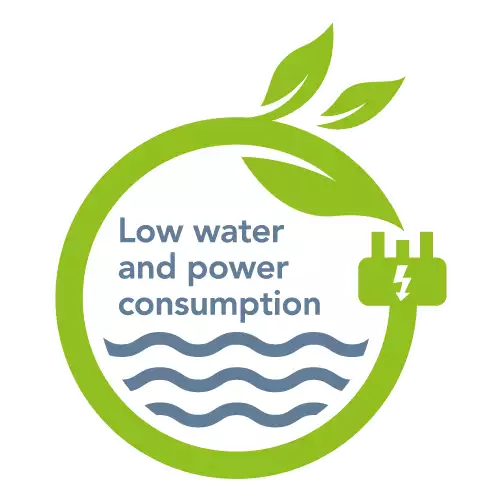 - Optimised for low water and power consumption
