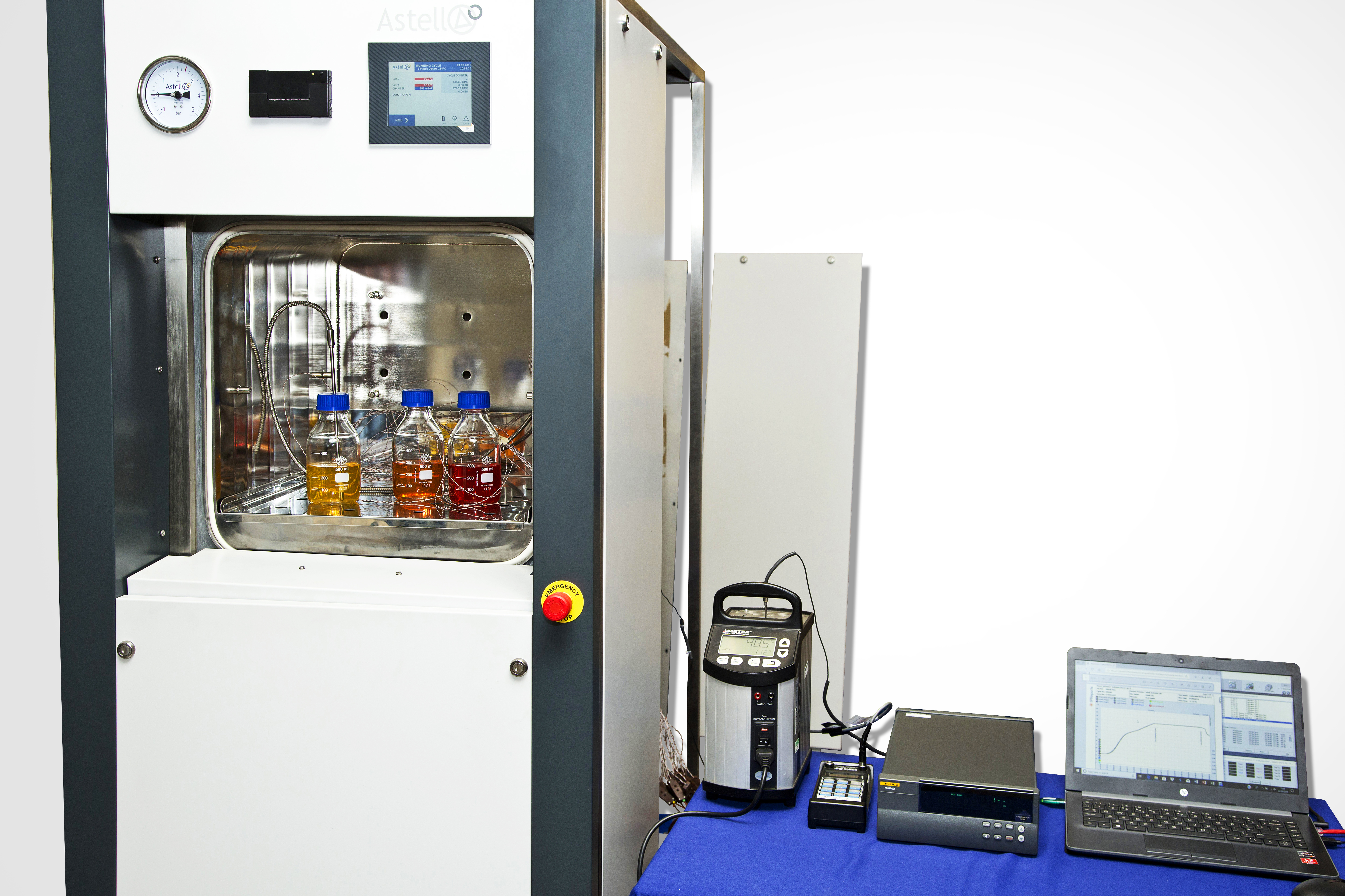 For laboratories that require larger sterilization space while keeping physical space to a minimum, Astell produces MNS-C sliding door autoclaves. These feature vertically sliding doors, which require less space to open compared to swing doors. While the physical attributes of an autoclave are important for smaller laboratories, it is equally crucial to ensure effective sterilization for every cycle. Astell Services provide multipoint validation services, creating test loads with materials equivalent to those that the laboratory will be sterilizing, equipped with temperature probes to monitor heat at multiple locations within the sterilized load.